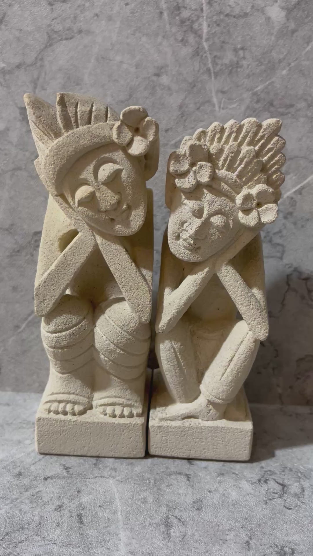 Celebrate romance, artistry, and cultural heritage with this Handmade Balinese Limestone Wedding Couple Sculpture. Expertly carved by Balinese artisans, this pair captures the grace and harmony of traditional Balinese wedding attire, adding a touch of serenity and elegance to your home décor.