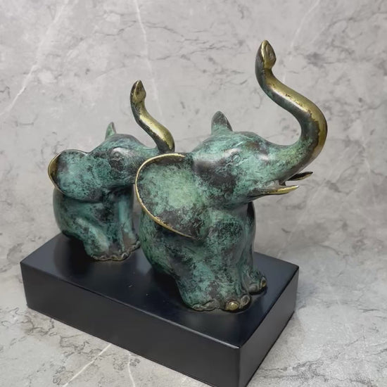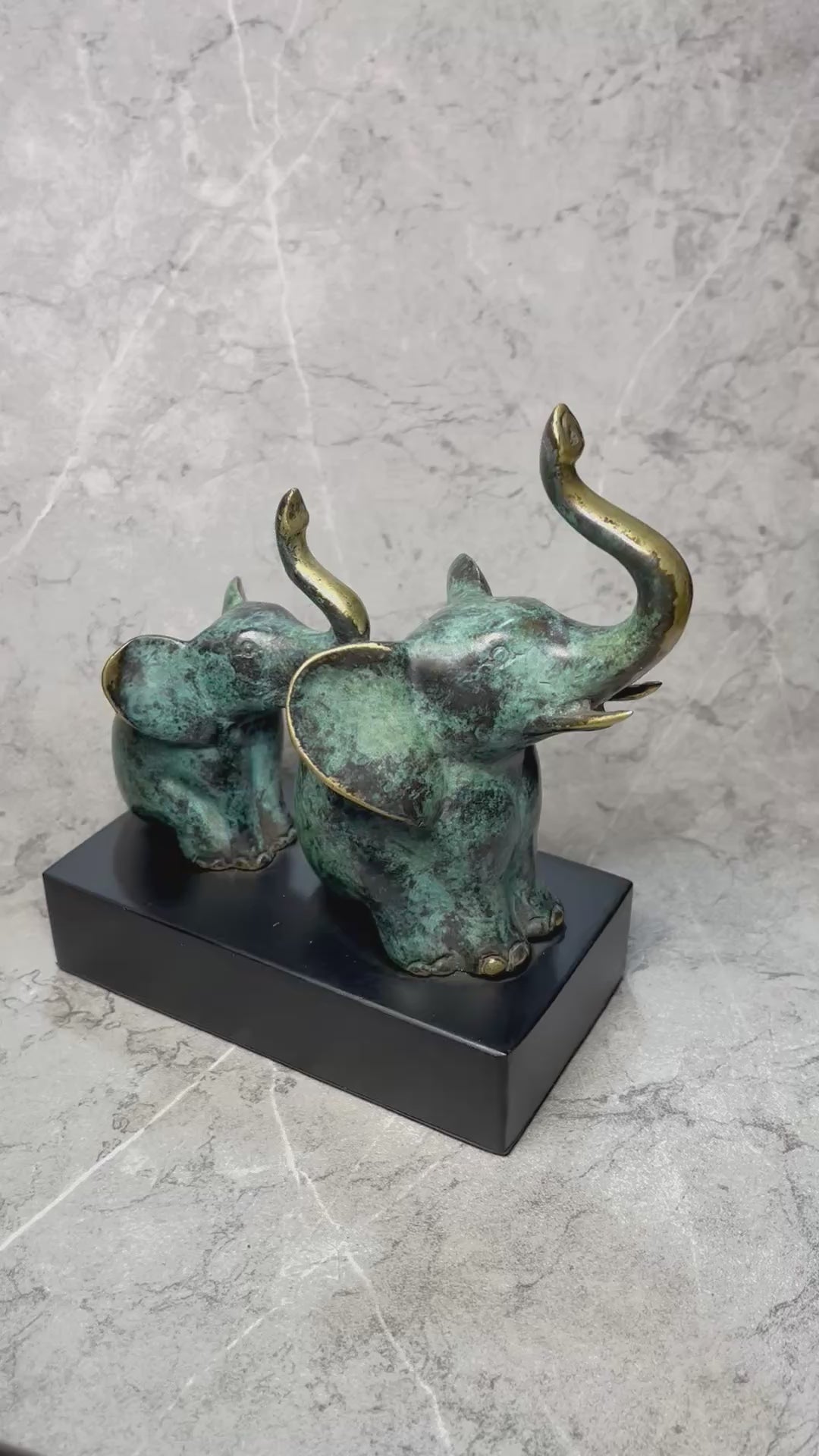 Symbolizing unity and wisdom, this handcrafted bronze sculpture of two elephants brings an elegant cultural touch to any space. Set on a sturdy iron stand, its smooth abstract form and rich patina make it a striking centerpiece for modern, rustic, or eclectic interiors.