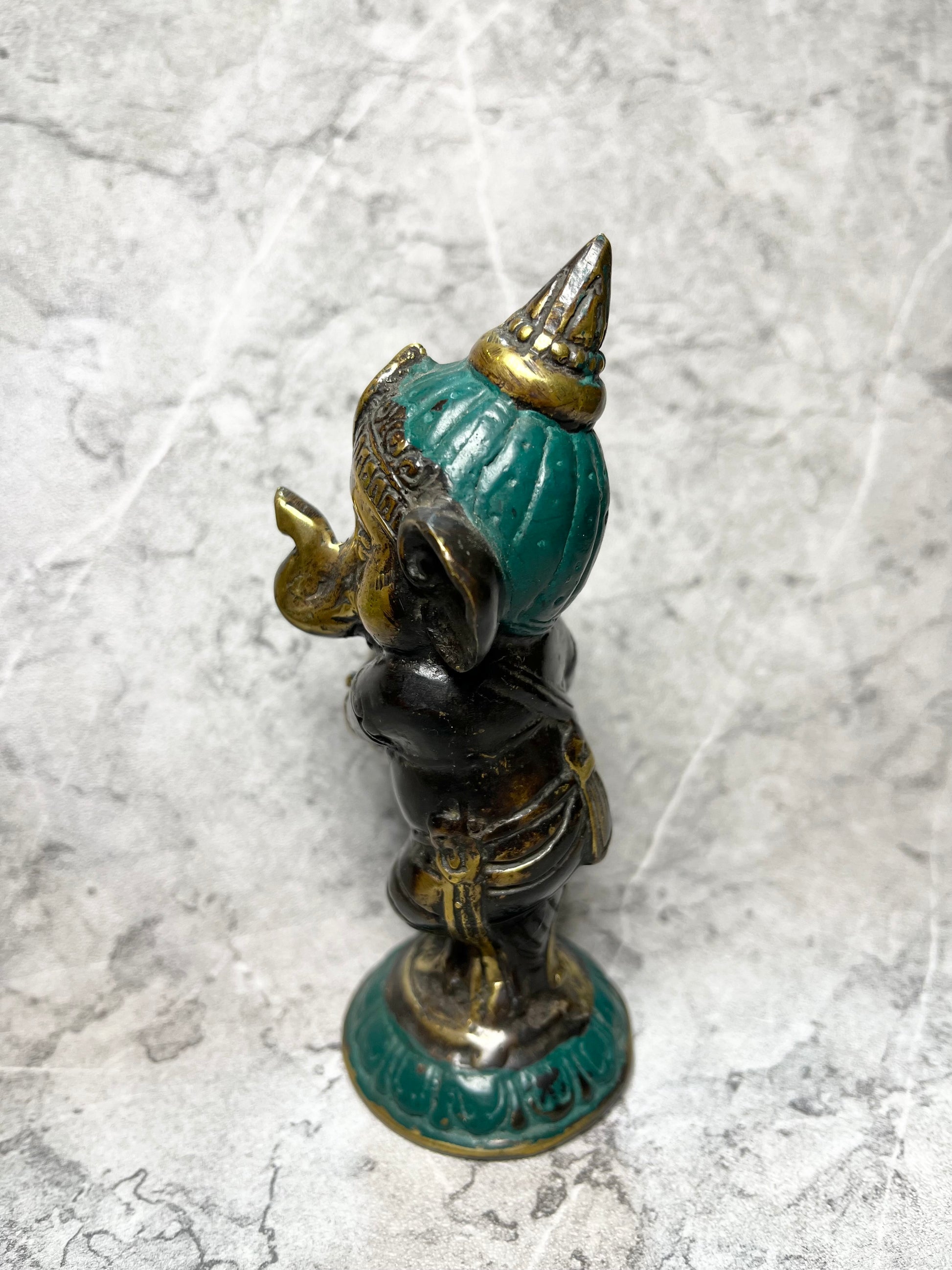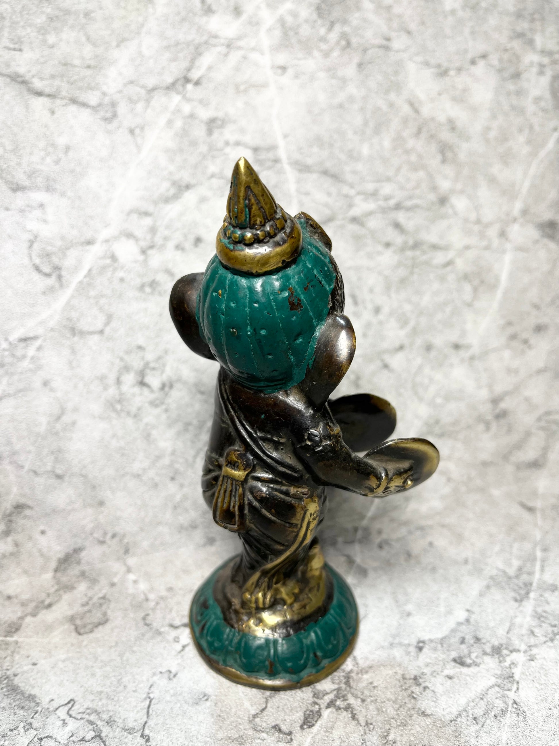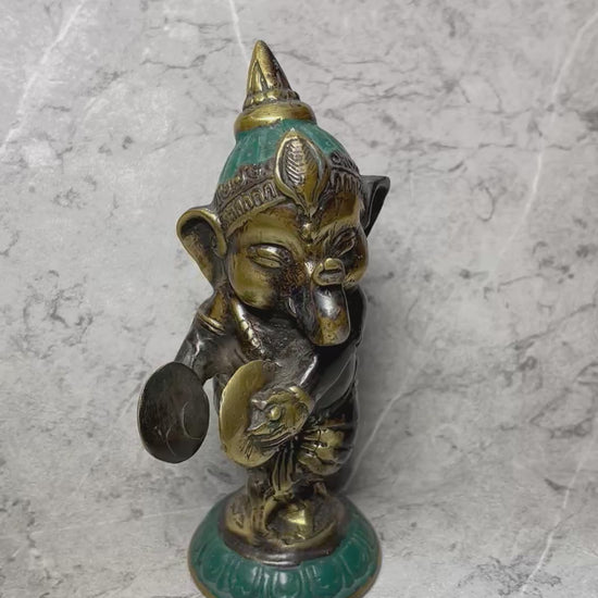 A symbol of wisdom, prosperity, and protection, this handcrafted bronze figure of Lord Ganesha carries divine charm in a compact form. With detailed craftsmanship and a warm patina, it’s a meaningful accent for personal altars, desks, or decorative displays.