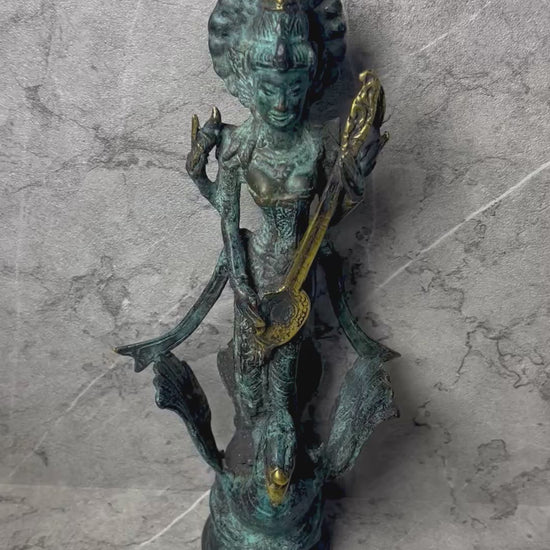 Bronze Goddess Saraswati – Hindu Goddess of Wisdom & Arts Figure Decoration