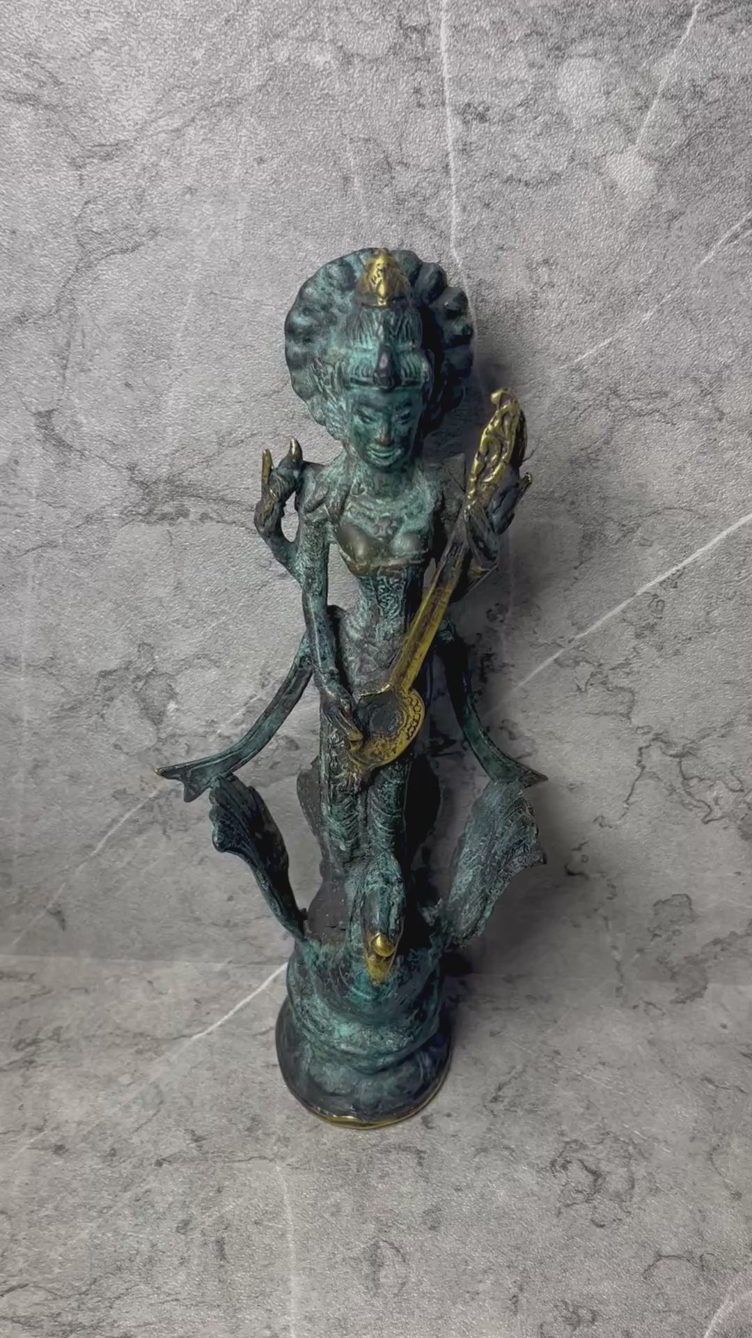 Bronze Saraswati Statue: Hindu Goddess of Wisdom, Balinese Art