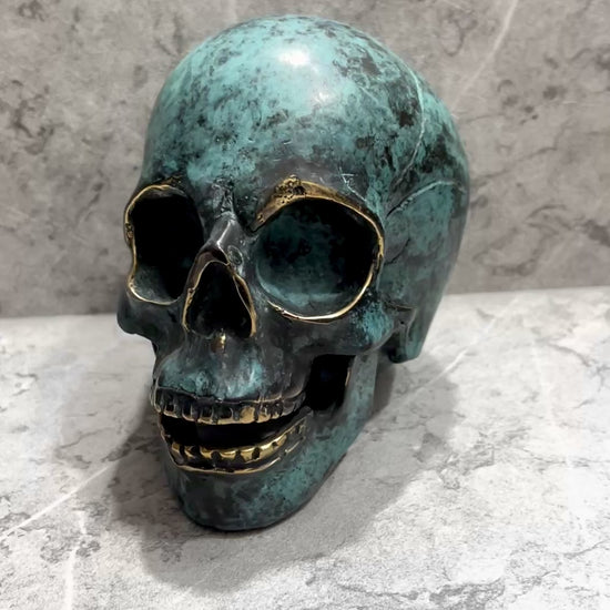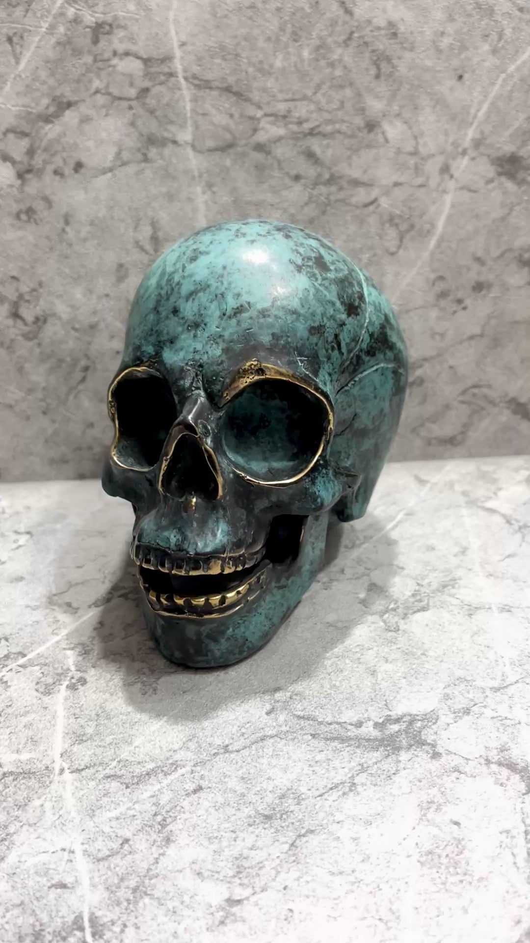 Bring a touch of mystery and edge to your space with this handcrafted bronze skull figure. Its bold metallic patina and intricate detailing make it a striking statement for collectors, eclectic interiors, or as a unique gift with personality.