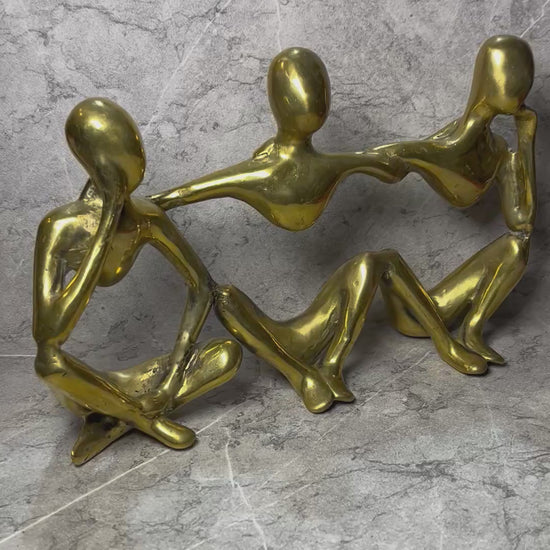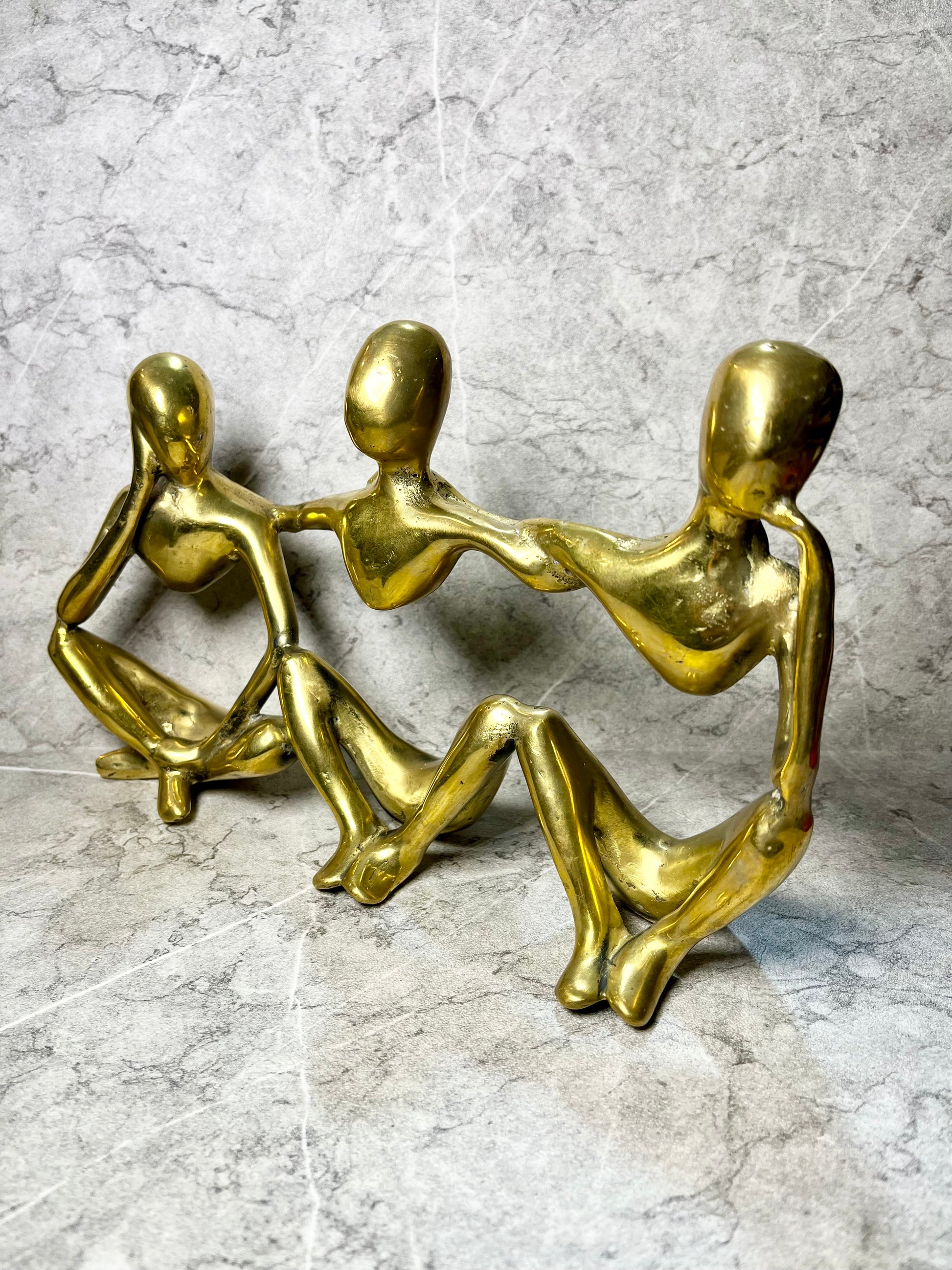 Circle of Dialogue – Bronze Abstract 3 People Chatting Figure | Handmade Balinese Art