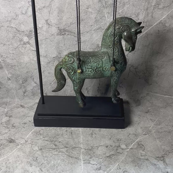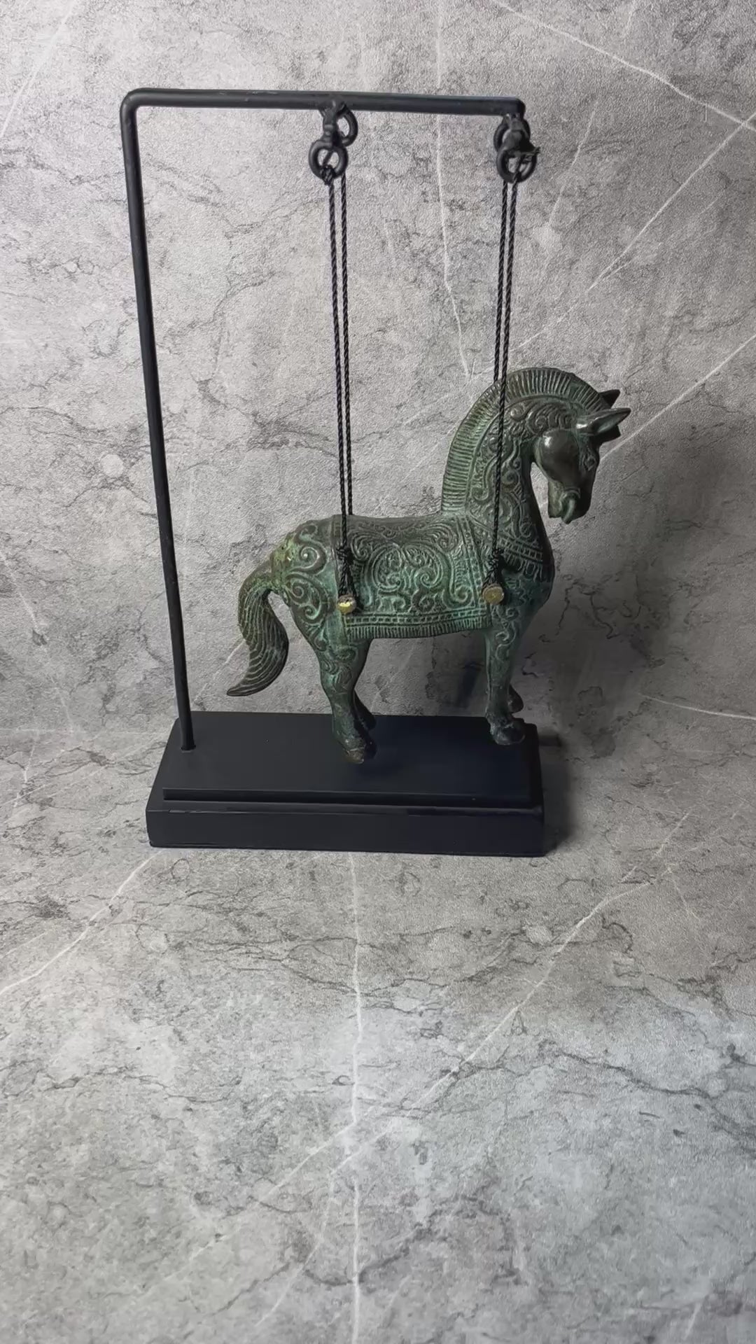 Grace in Motion – Bronze Hanging Horse Figure | Patina Art with Iron Hook