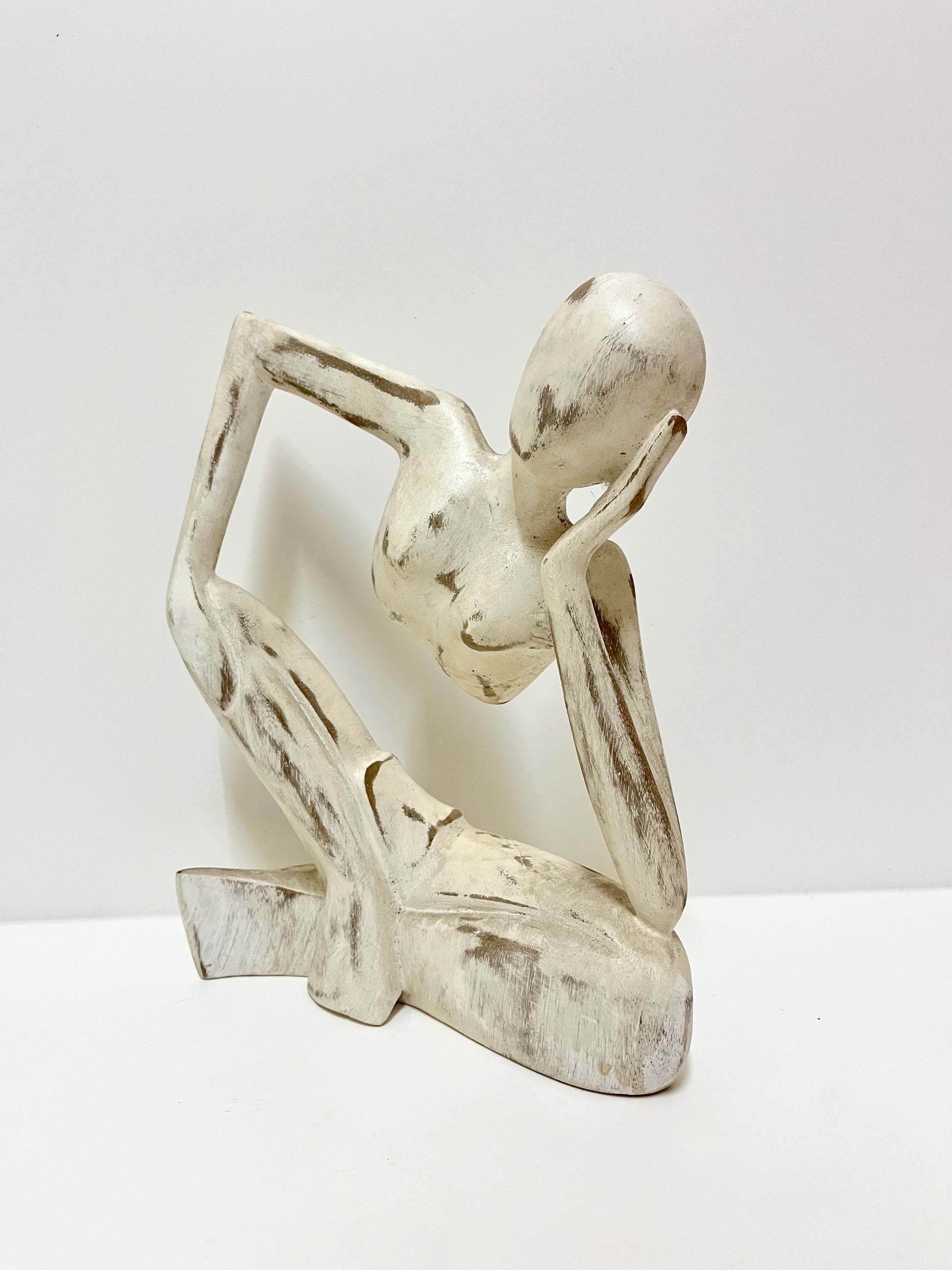 Grace in Thought – Abstract Wooden Woman Sculpture | Balinese Hand-Carved Decor