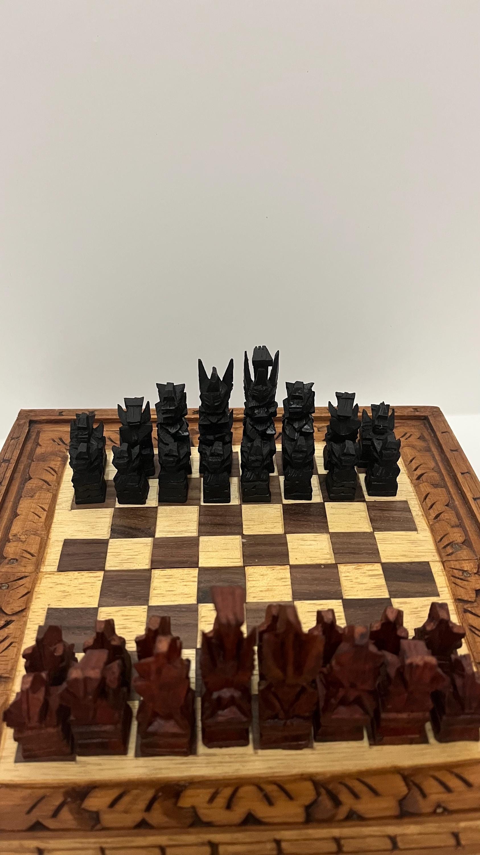 Hand-Carved Balinese Wood Chest: Artisan Keepsake Box with Chess Pawn