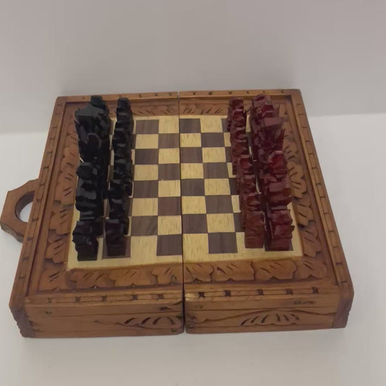 Balinese Hand-Carved Wooden Chess with Lid – Artisan Storage Box with Chess Pawn Accent