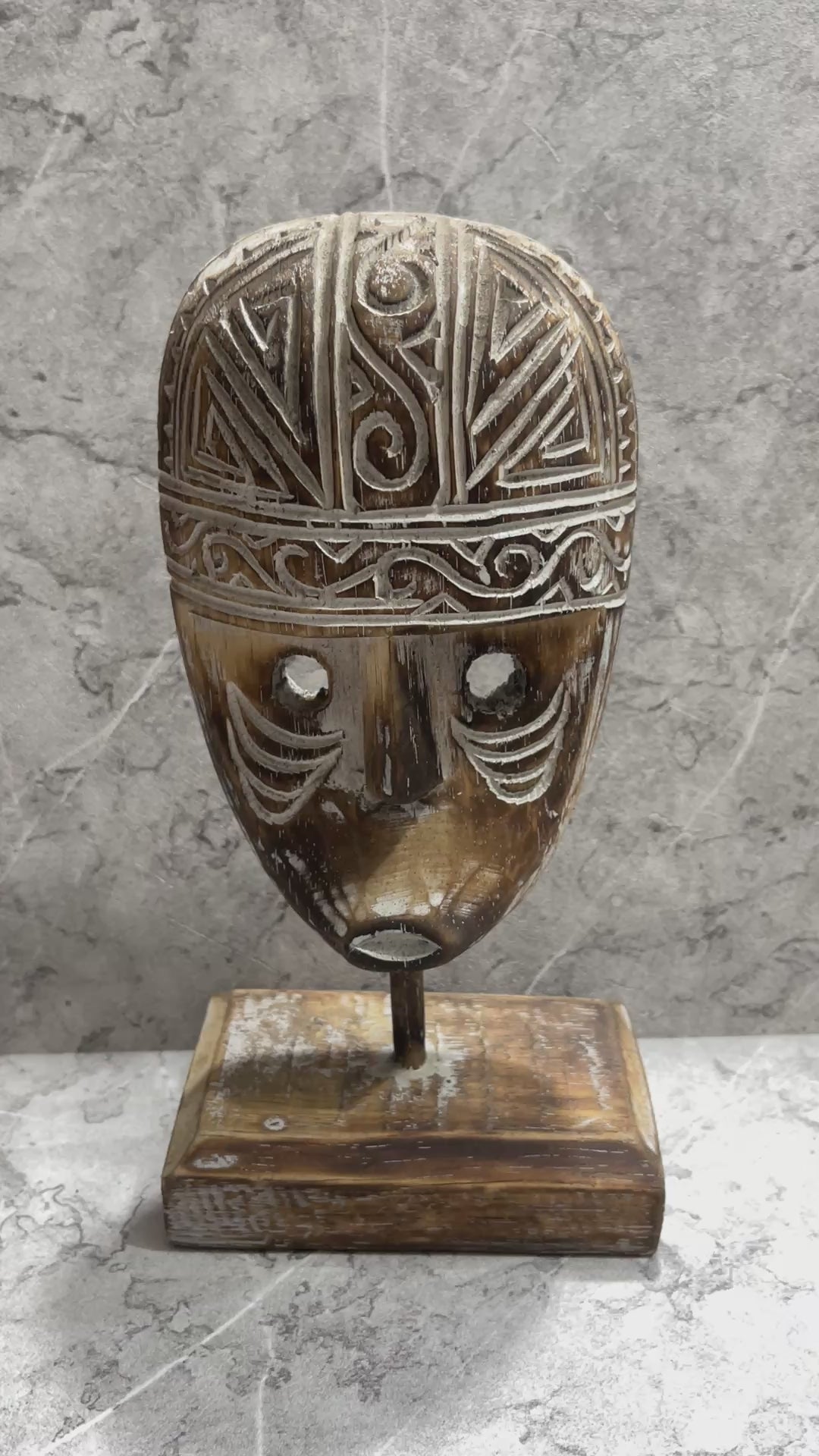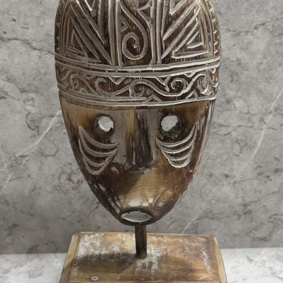 Hand-Carved Timor Mask Sculpture with Stand: Tribal Art Décor