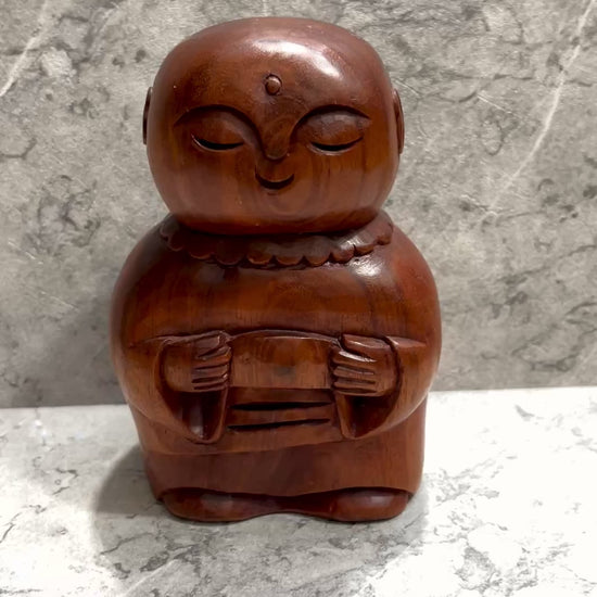 Peaceful and full of warmth, this handcrafted wooden Jizo sculpture embodies compassion and protection. Known as the guardian of travelers and children in Japanese tradition, Jizo statues bring comfort, serenity, and good fortune to any space. Perfect as a meaningful gift, a housewarming present, or a charming addition to your home or garden decor.