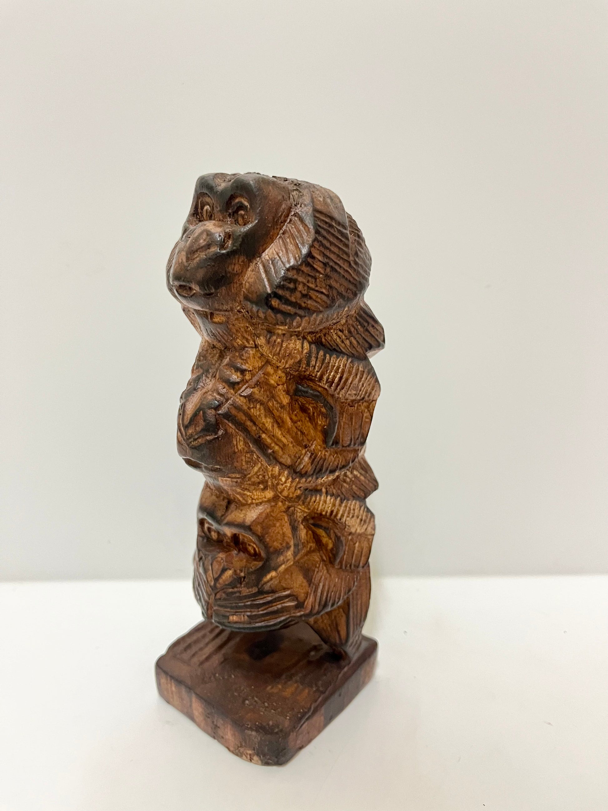 Hand-Carved Wooden Monkey Trio Statue: Balinese Wisdom Decor