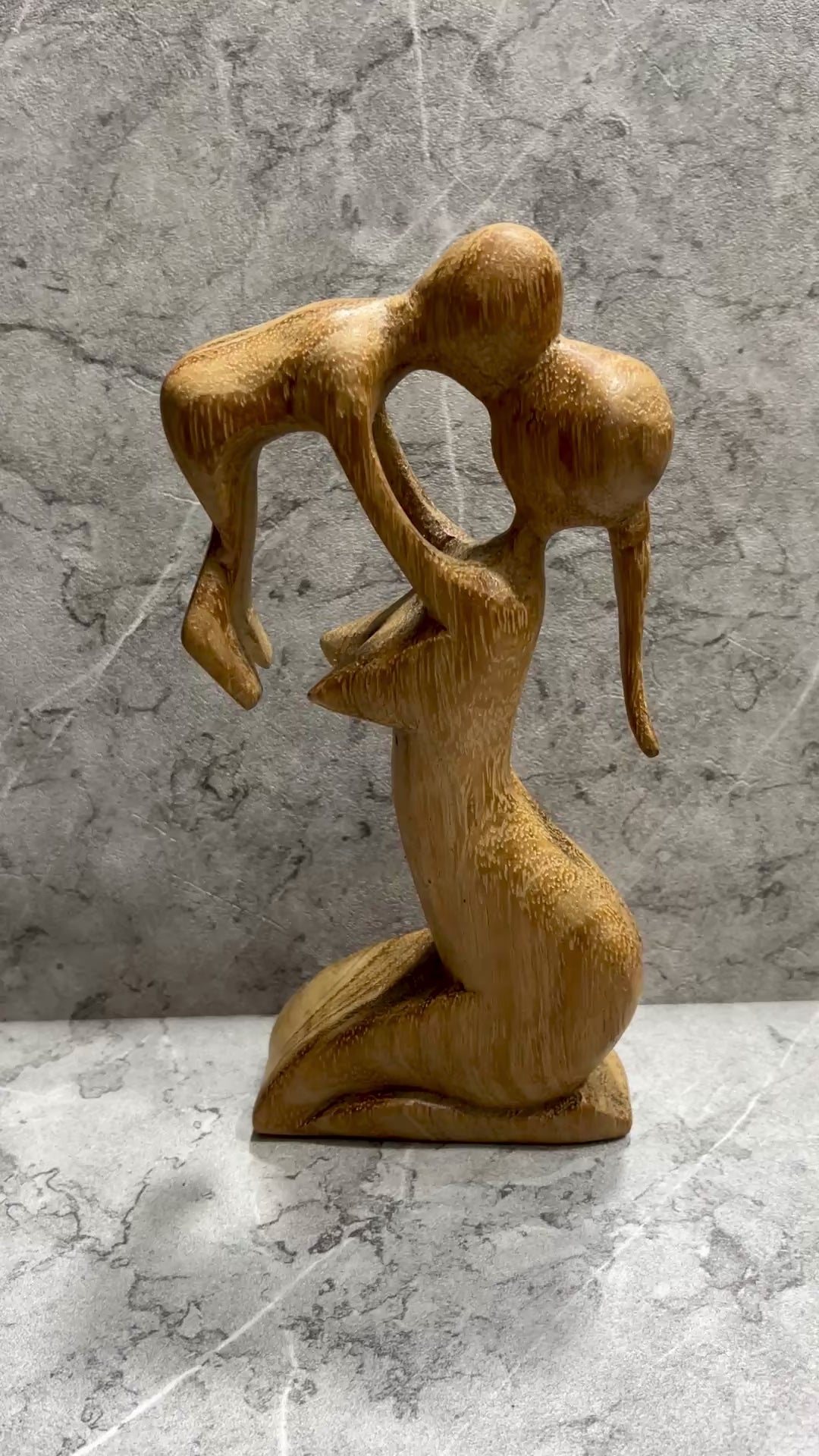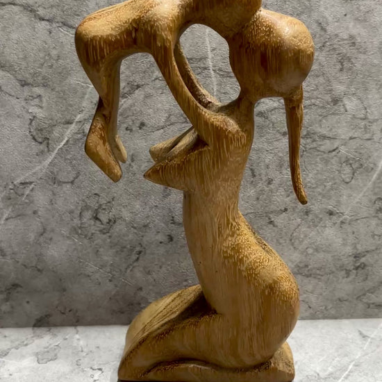 Celebrate the unbreakable bond between mother and child with this beautifully hand-carved wooden sculpture. Its flowing abstract form and smooth polished finish create a timeless piece that radiates love, warmth, and artistry.