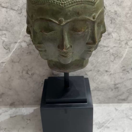Handcrafted Bronze Buddha Head Sculpture: Balinese Patina Home Decor