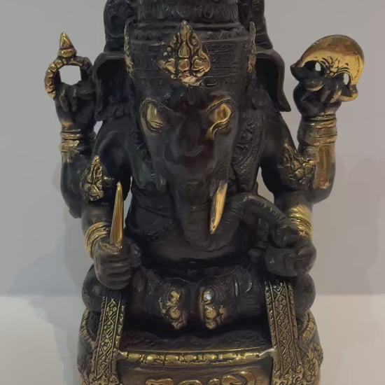 Handmade Bronze Ganesha Statue: Balinese Black and Gold Sculpture