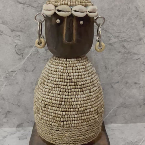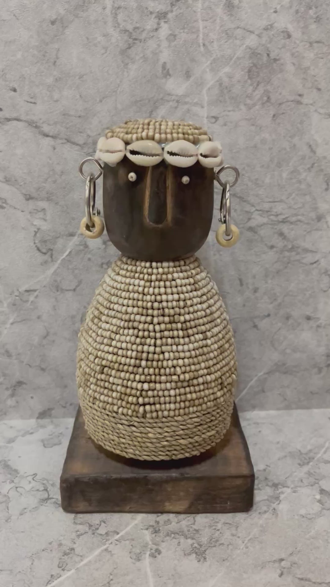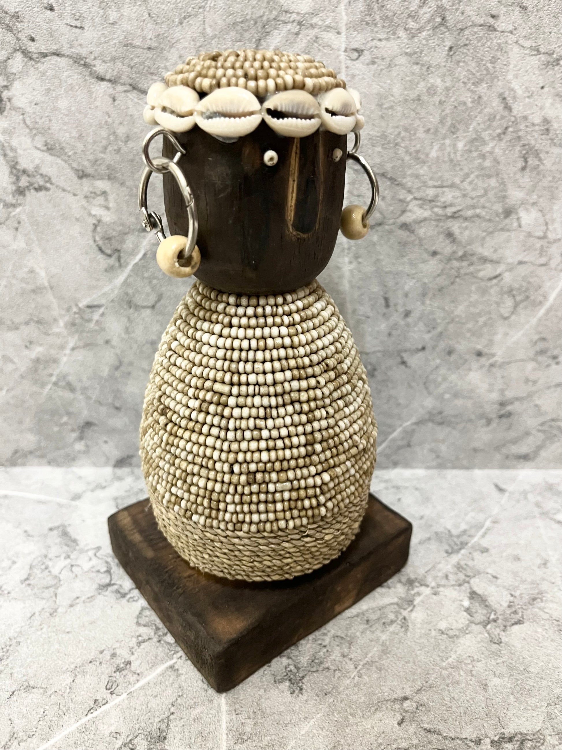 Timor Tribal Wooden Figure with Sea Shell Beads – Handcrafted Ethnic Decor