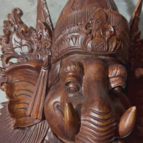 Wooden Balinese Ganesha Mask – Hand-Carved Hindu God Wall Sculpture | Spiritual Elephant-Headed Deity Home Decor