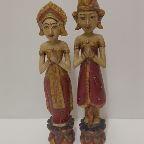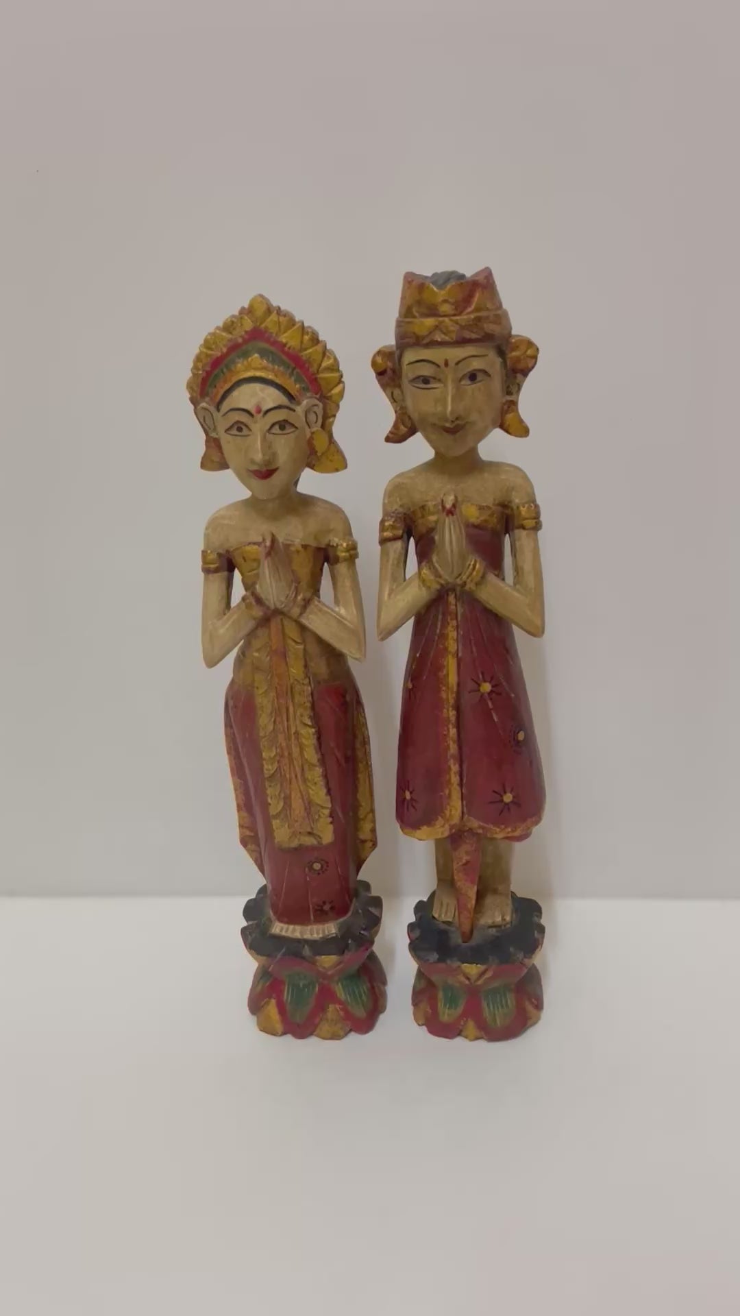 Celebrate love, tradition, and craftsmanship with this stunning Balinese wedding couple set. Meticulously hand-carved from wood, this pair of bride and groom statues captures the beauty of traditional Balinese attire and ceremonial grace. A heartfelt tribute to unity and heritage, perfect for weddings, anniversaries, or cultural home decor.
